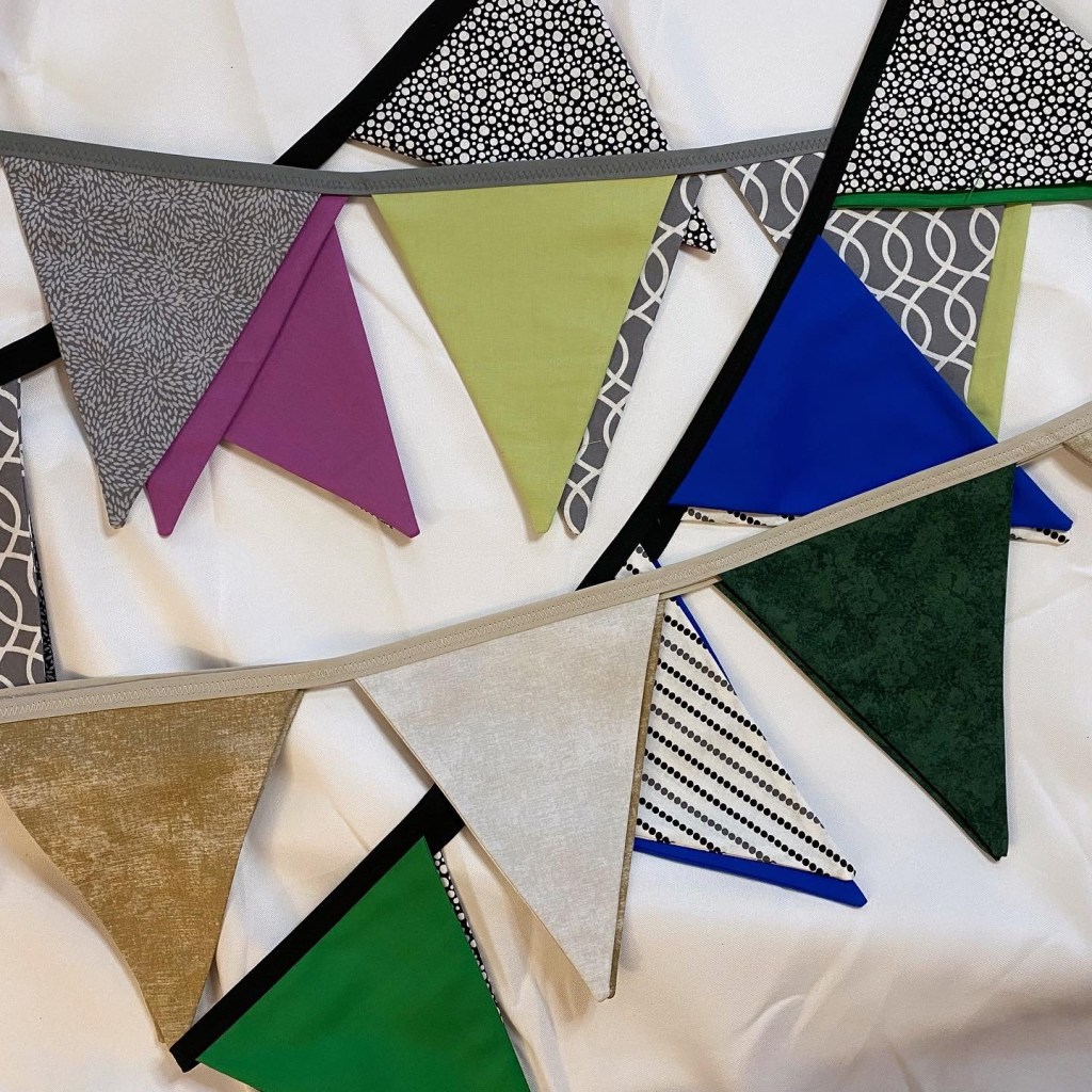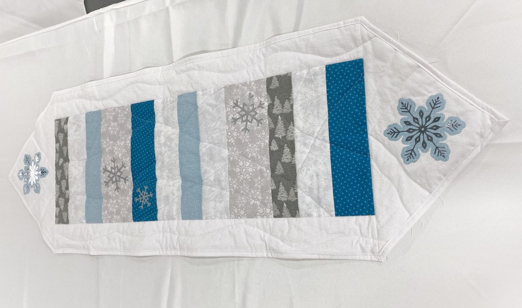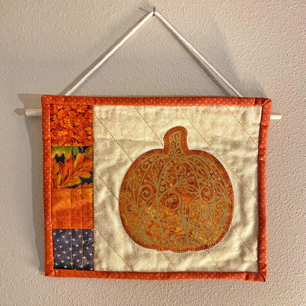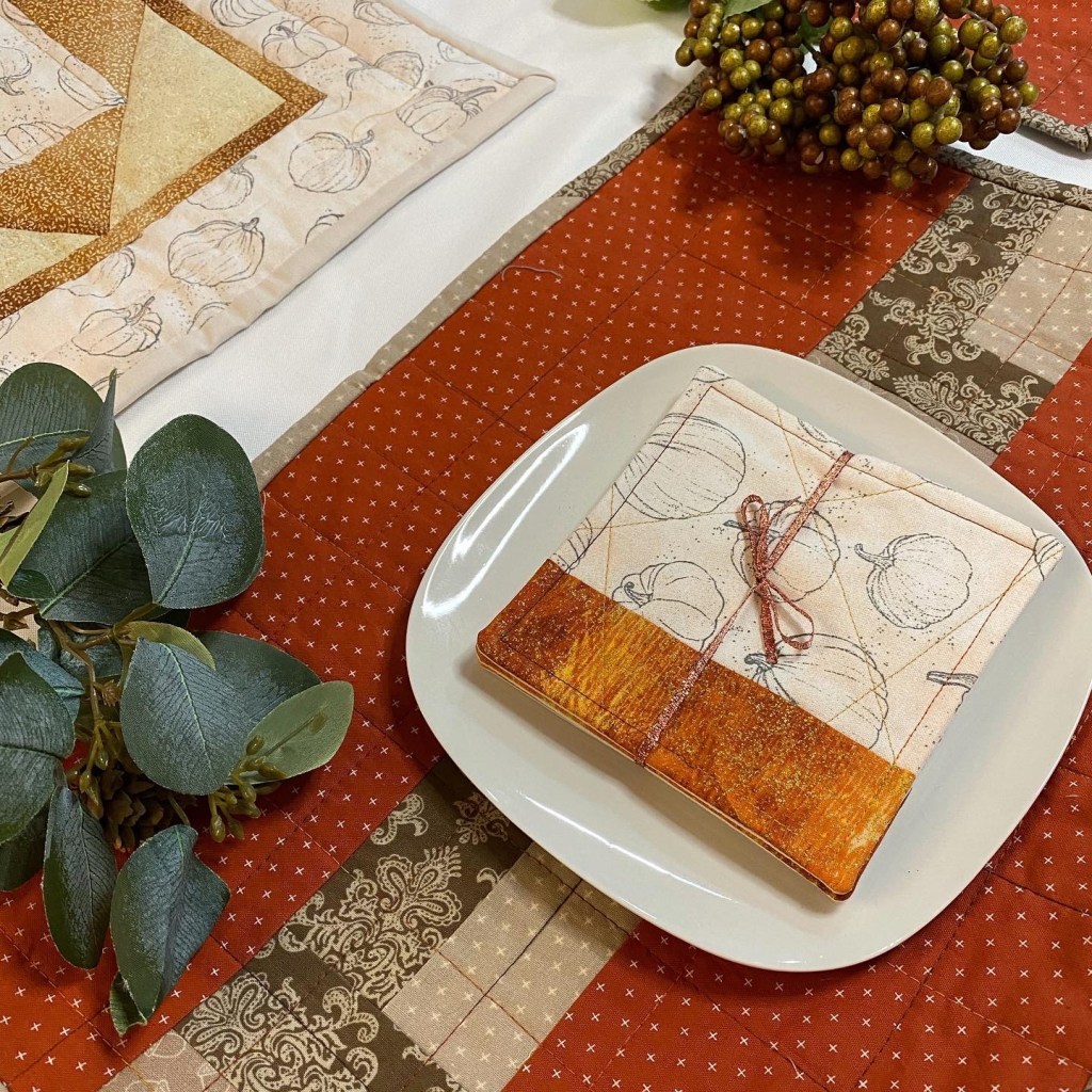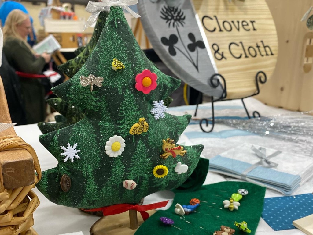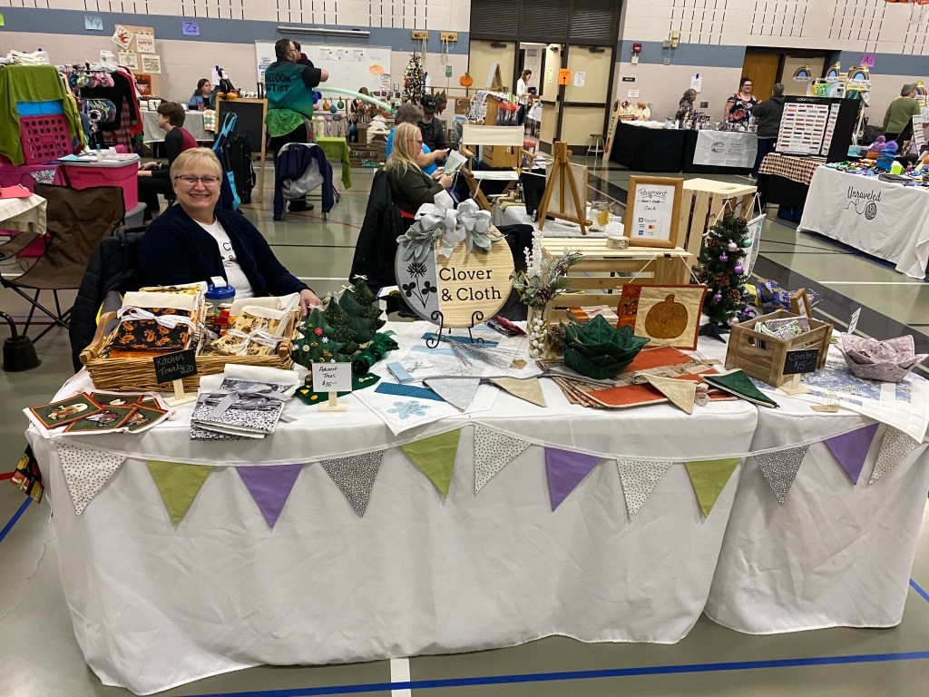 A variety of quilted items, from wall hangings to table linens. All appliqué and vinyl work is from original drawings.